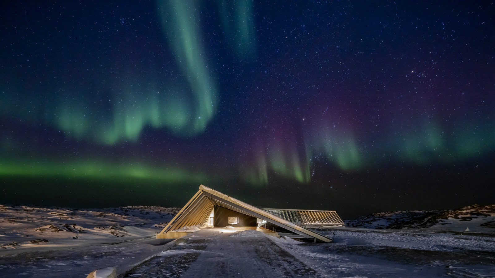 The vulnerability of this wilderness is reflected in architect Dorte Mandrup's Icefjord Centre in Ilulissat. Built on a high plateau on the edge of Greenland's third largest town, the visitor centre not only overlooks the spectacular bay with its drifting icebergs. With its shape of a wing, it blends into this wind and snow-blown landscape.