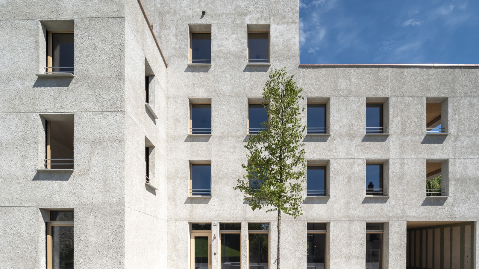 Materials developed in-house, such as Cancret hempcrete, are used in the Widnau development.
